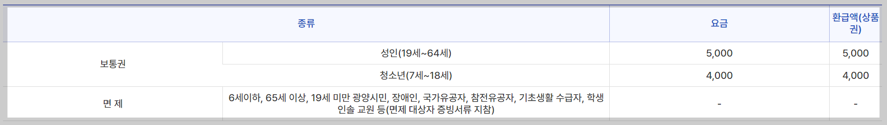 6세 이하, 65세 이상, 19세 미만 광양시민, 장애인, 국가유공자, 참전유공자, 기초생활 수급자, 학생인솔 교원 등 (면제 대상자 등빙서류 지참)