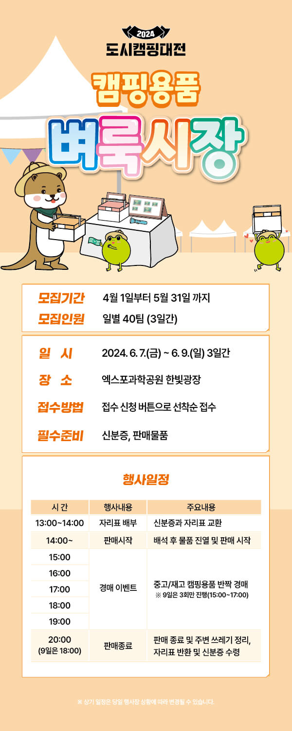 - 기타 내용: 캠핑용품을 저렴하게 구입할 수 있는 캠핑 벼룩시장 운영.
