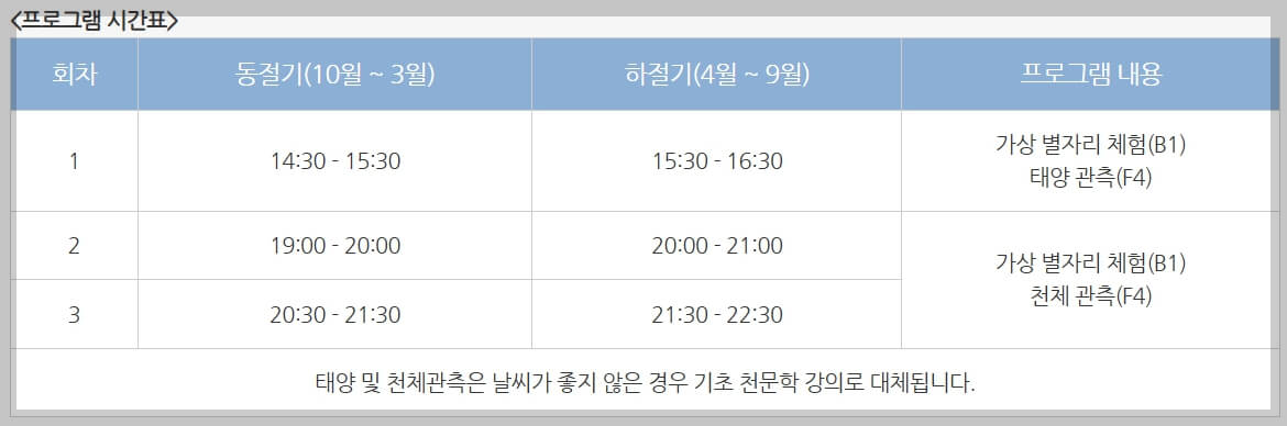 ※ 천문대 사정에 따라 변경될 수 있습니다.