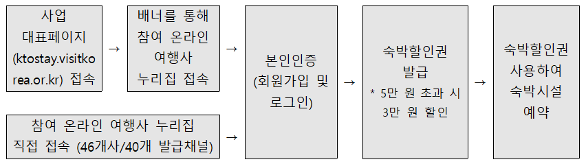1. 숙박할인권은 2월 27일(화)부터 매일 오전 10시, 46개 온라인 여행사가 참여한 40개 온라인 채널을 통해 1인 1매 선착순으로 발급하며 수량 소진 시 종료됨