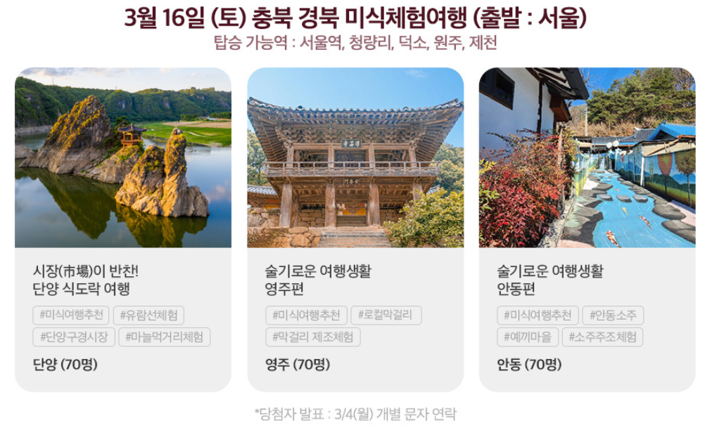 - 3. 15 / 3. 16 : 여행 당첨자 발표 2. 28(예정)