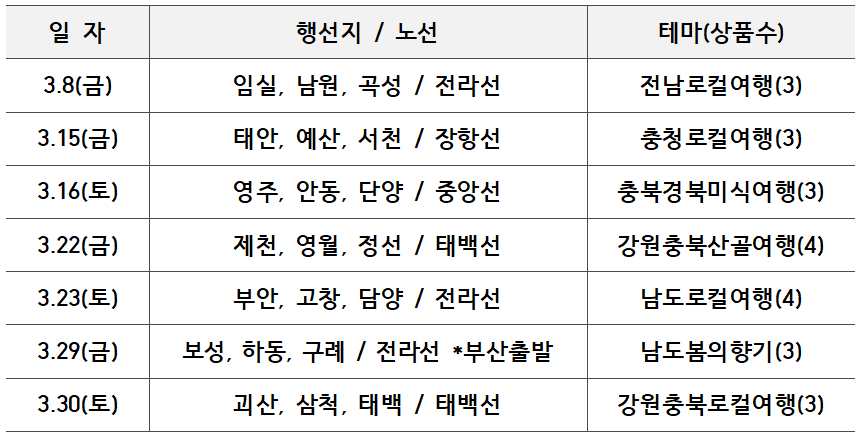 3월엔 여기로, 기차로 떠나는 로컬여행에 대하여 미리 준비해 보시기 바랍니다.